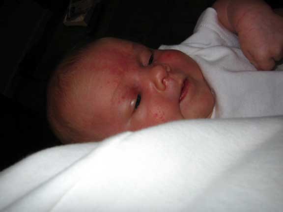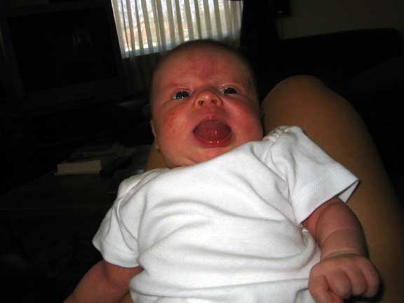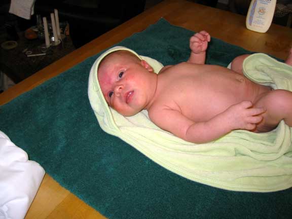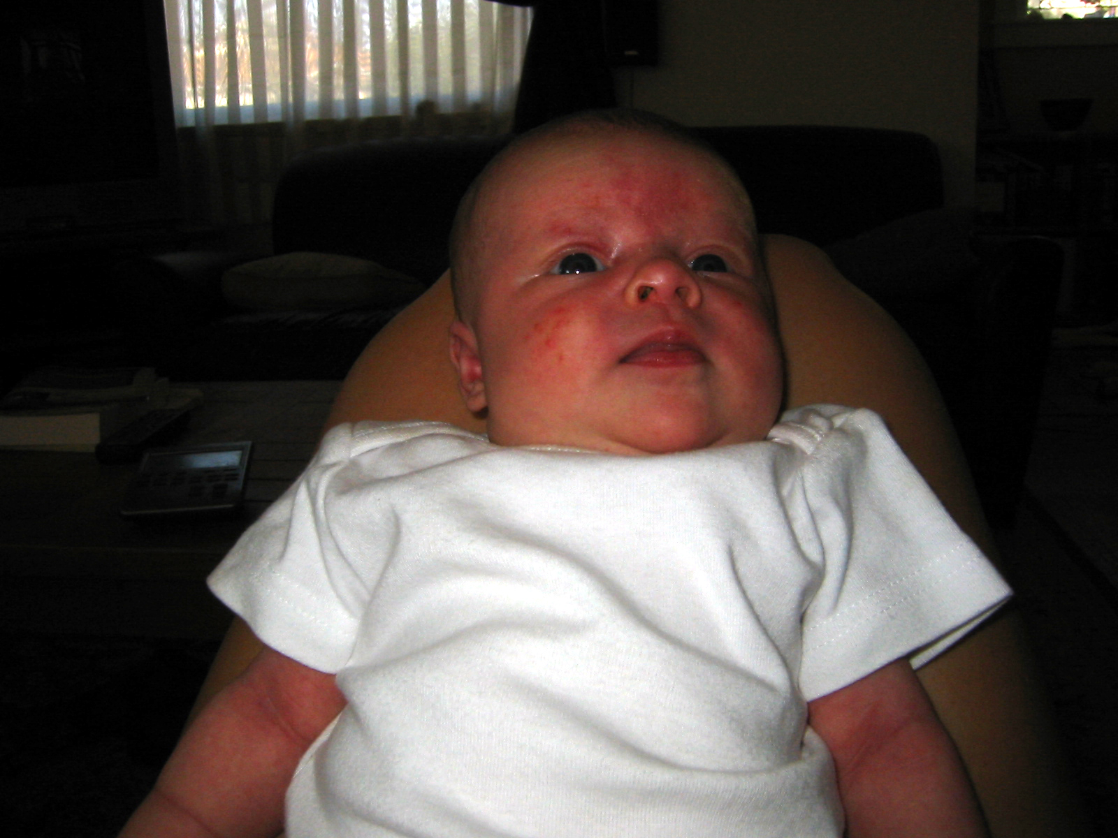 Elsa, Week 4Below are some photos of Elsa's fourth week. Click on the thumbnail for a larger view. Note: if you want to download a printable version of the photos below, click your right mouse button on the words hi-res after the photo. Choose Save Image As (Netscape) or Save Picture As (Explorer) to save the file to your hard disk. Then, you can print out the photo using your usual photo printing program. The hi-res photos are about 1 MB each, and will take a while to download.
