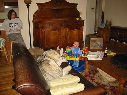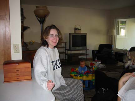 Elena Helps Us Move (April 2003)After a desperate plea for help, Elena came out to help us pack and move to the new house. Moving day was April 24, and it was a rainy day. The movers were very efficient, buthad forgotten that they left the lights in the truck on, so we had to jump the moving truck with the Xterra (after driving over the lawn to get to the front of the moving truck). Let's just say it was an adventure!