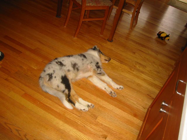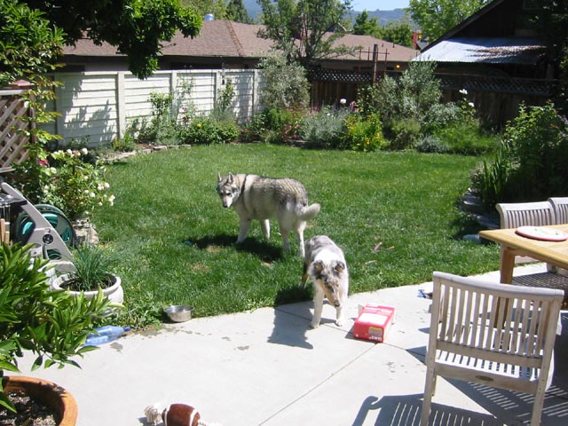 Flyer (May 2005)We lost Spiny suddenly due to cancer, and without him, those squirrels in the back yard started getting uppity. Now we have a new member of the family, a rough collie puppy named Flyer. He was born Jan 3. He's settling in pretty well so far. We also removed the old avocado tree and the holly trees from the front yard. We put in a red Japanese maple to fill the gap. See the photos below for what it looks like now.