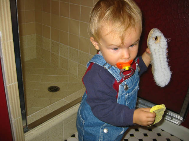 Helping to clean the shower
