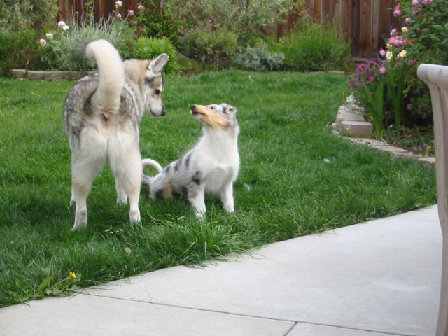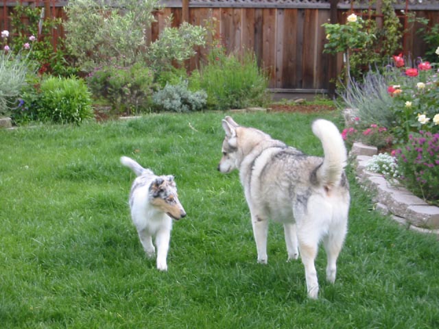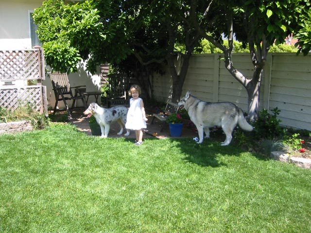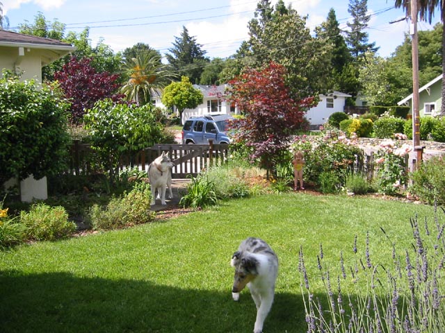 Flyer (May 2005)We lost Spiny suddenly due to cancer, and without him, those squirrels in the back yard started getting uppity. Now we have a new member of the family, a rough collie puppy named Flyer. He was born Jan 3. He's settling in pretty well so far. We also removed the old avocado tree and the holly trees from the front yard. We put in a red Japanese maple to fill the gap. See the photos below for what it looks like now.