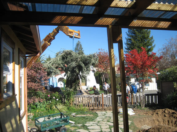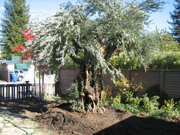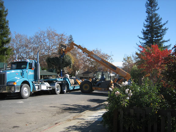 The Giant Tree (November 2007)Here are some shots of the giant 100-year old Sevillano olive tree we had planted in the front yard (from Heritage Olive Trees). Pretty impressive that you can actually move such a thing and have it survive! Max had a great time playing in the giant hole (9' diameter) and kept jumping off the dirt pile into the hole.